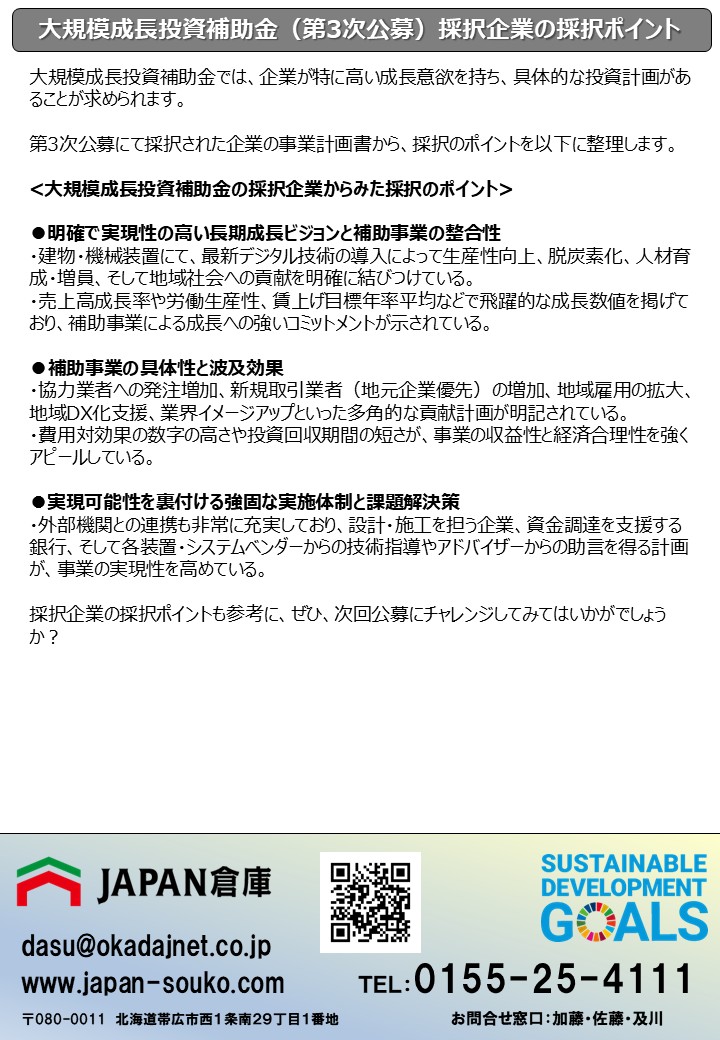 倉庫・工場通信(8月号)大規模成長投資補助金の採択ポイントを解説_スライド2 | JAPAN倉庫