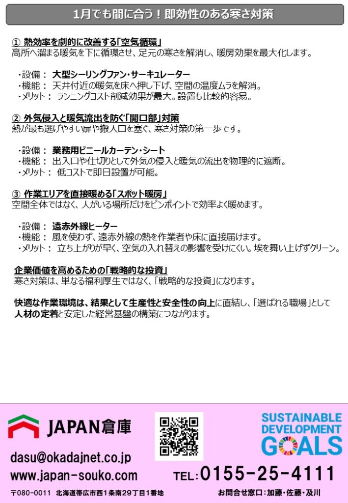 生産性と安全を守る!即効性のある寒さ対策 | JAPAN倉庫